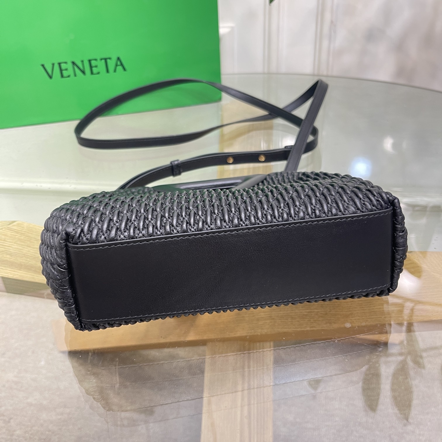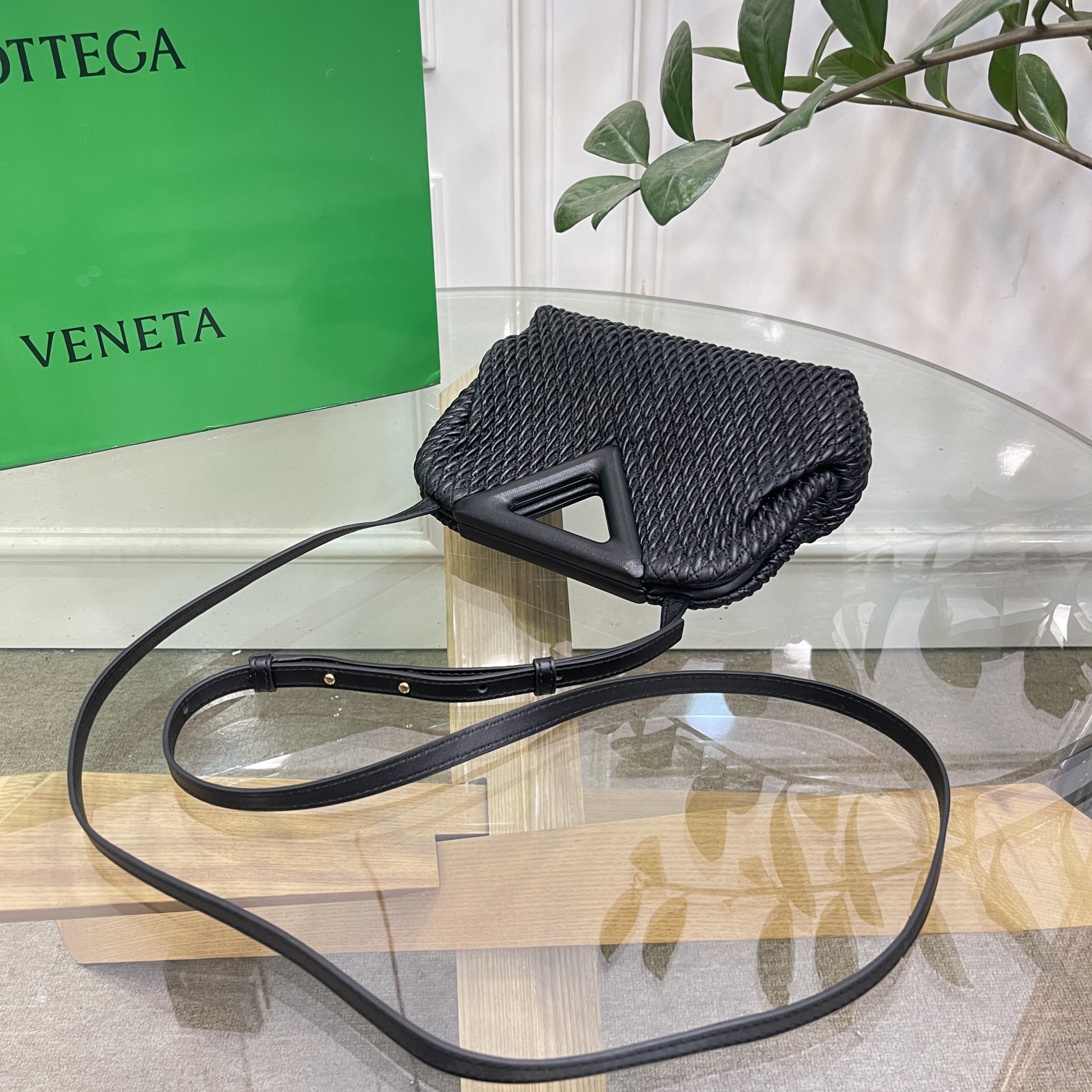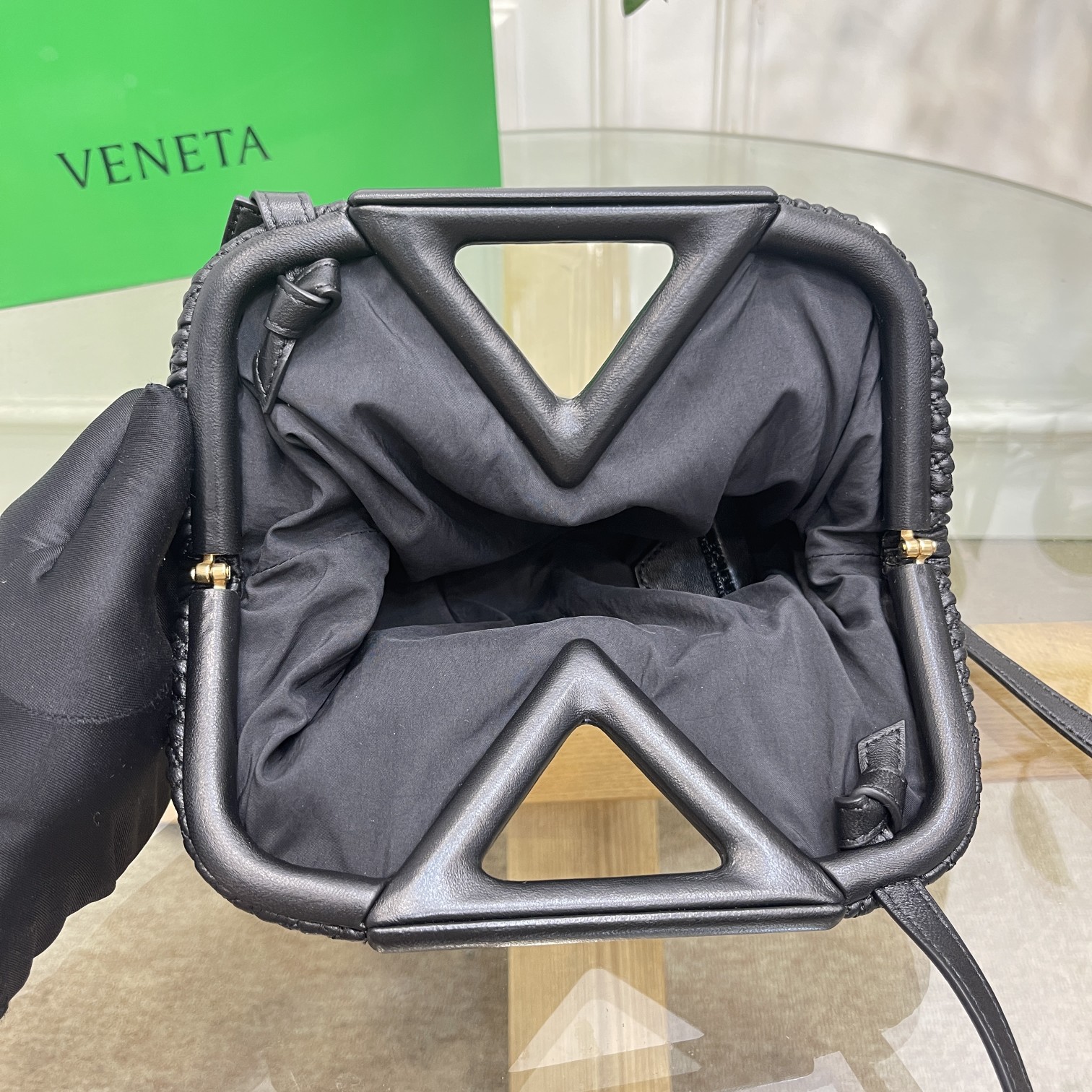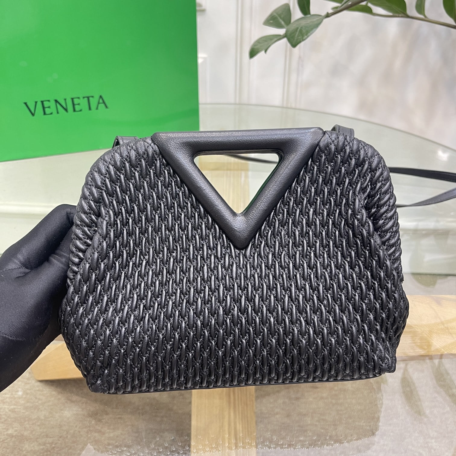 보테가베네타 스몰포인트 퀼팅 탑 핸들백 블랙