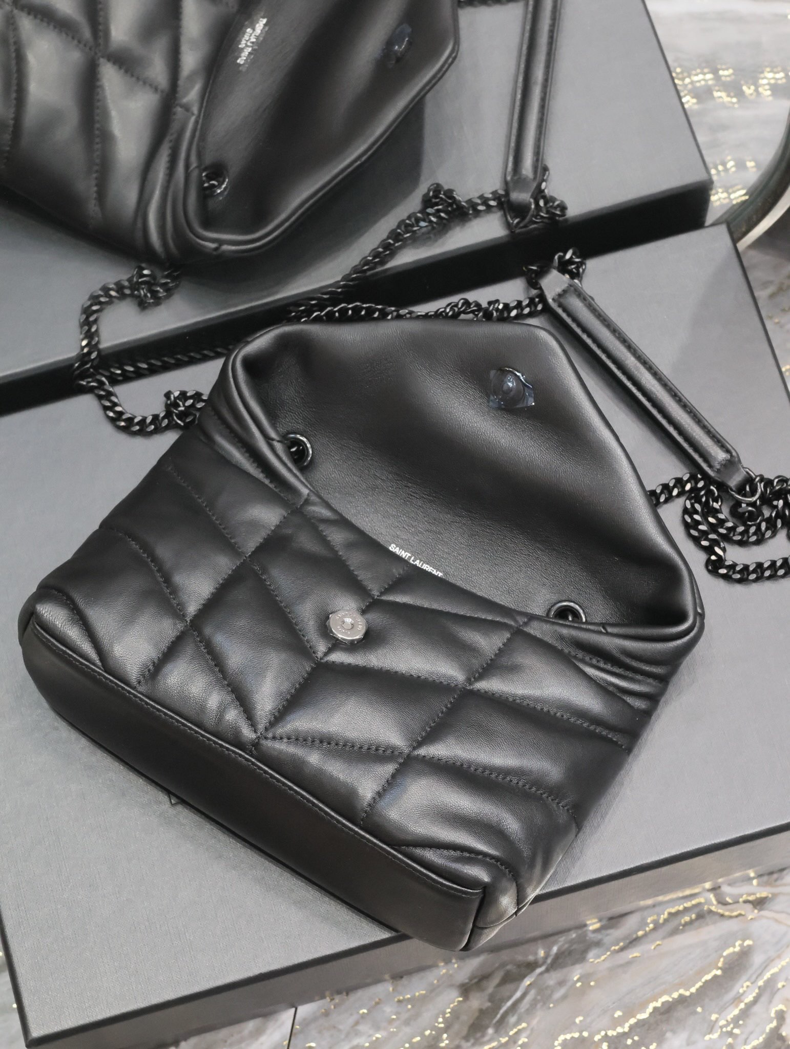생로랑 루루 푸퍼 숄더 크로스백 블랙 759337