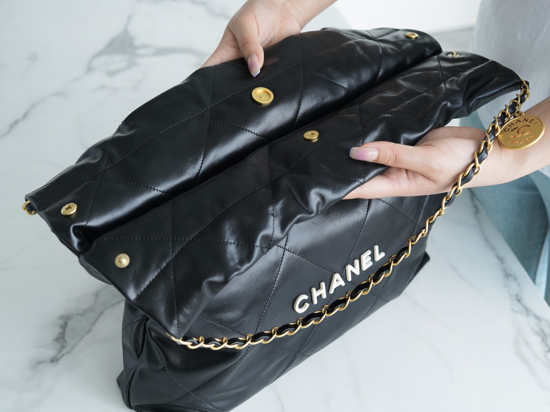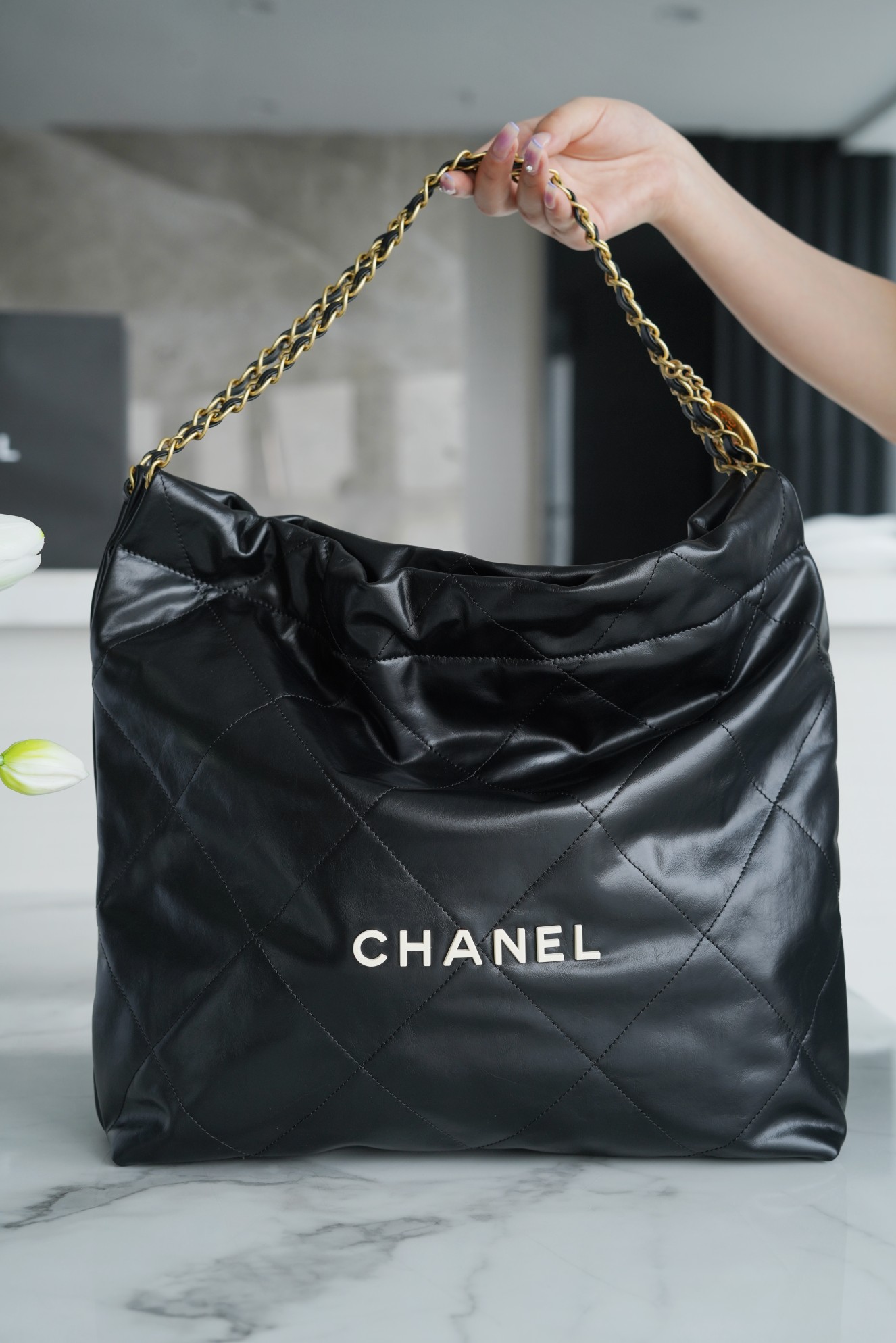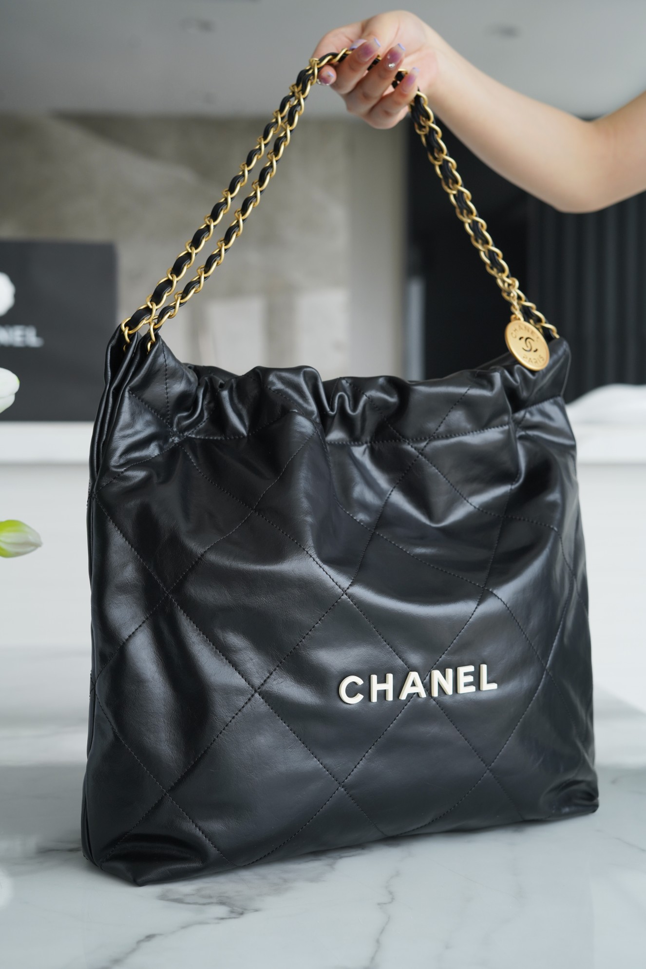 샤넬 22백 미듐 블랙 화이트 라벨