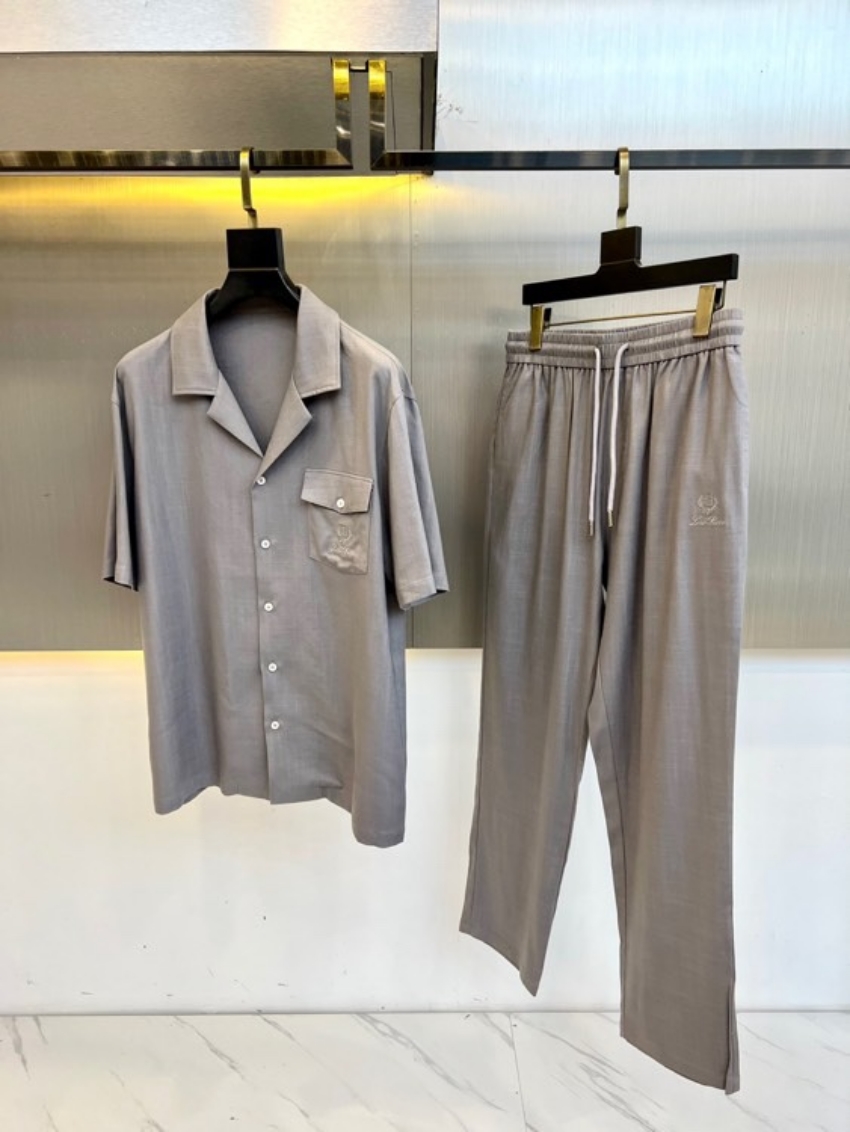 로로피아나 Loro Piana 남성용 반팔 셔츠 긴바지 세트